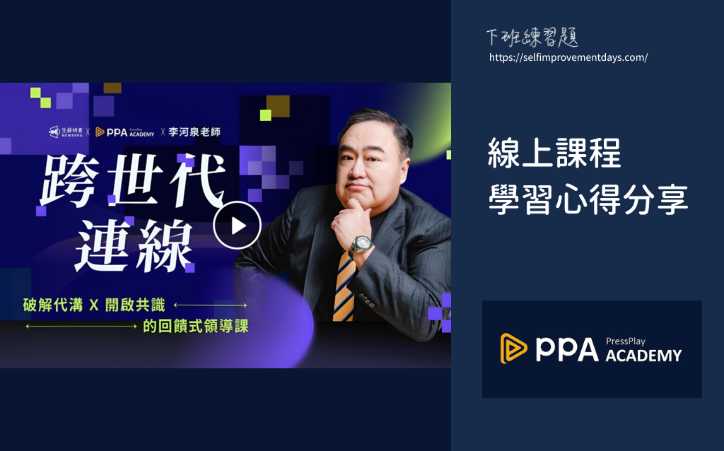 Home 下班進修(優惠碼 AFP2026SD1)【 2026 線上課程心得 】李河泉《跨世代連線|破解代溝 X 開啟共識的回饋式領導課》PressPlay 隱藏優惠碼折扣碼+課程評價推薦:如何管理年輕員工?中階主管降低離職率的實戰方法|下班進修|下班練習題